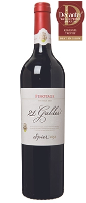 This year's Decanter World Wine Awards Regional Trophy for South African Single-Varietal Red over £15 went to Spier, 21 Gables Pinotage, Stellenbosch 2011 (14.5%)
