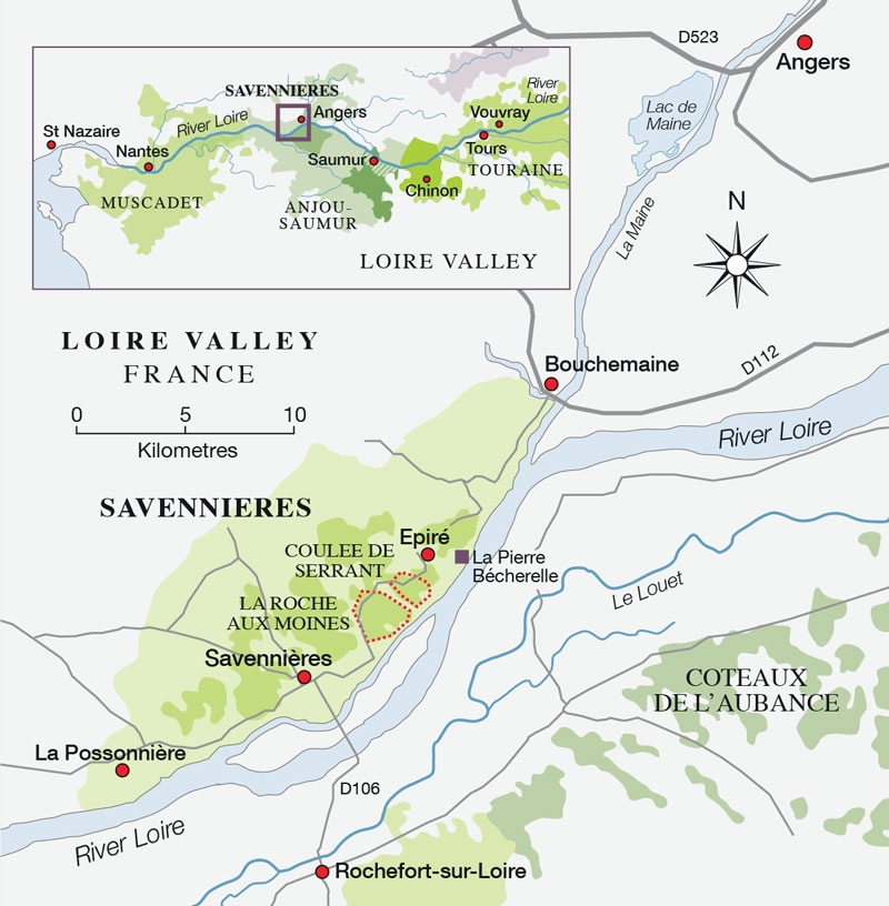 Coulée de Serrant is the supreme terroir of Savennières, and vindicates those who make extravagant claims for the greatness of its soils. If Savennières remains stylistically inconsistent, that may not matter, although it makes life difficult for the wine lover. There are styles to suit everybody, from austere to opulent, from reductive to rich and oaky. Best of all, the appellation has been rescued from gradual decline not only by such stalwarts as Luc Brizard, Nicolas Joly and Pierre Soulez, but by a growing number of keen younger growers such as the Laureau brothers of Domaine Laureau, Sylvie Termeau of Moulin de Chavigné, Florent Baumard of Domaine des Baumard, and Eric Morgat of Domaine de la Monnaie.
