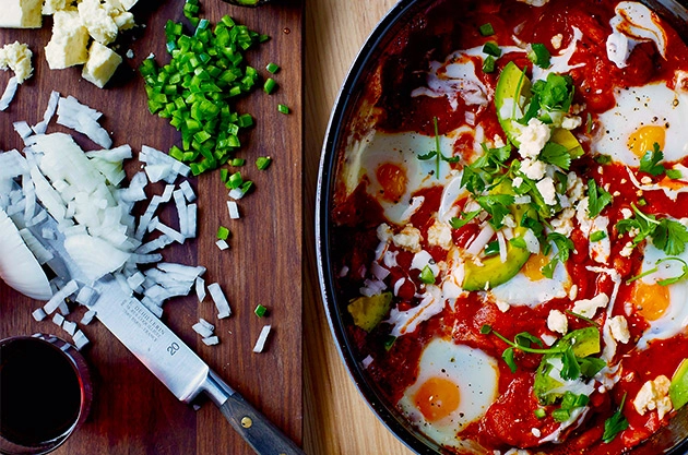 Jenn Louis, chef at Lincoln Restaurant in Portland, Oregon, grew up three hours from Mexico, a little east of Los Angeles. Today, she often looks south of the border for dinner inspiration. Here she braises chicken thighs and poaches eggs in a smoky tomato sauce reminiscent of Mexican tinga.
