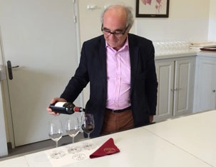 Charles Chevallier of Chateau Lafite Rothschild pours 2013 wines during an interview with Decanter.com