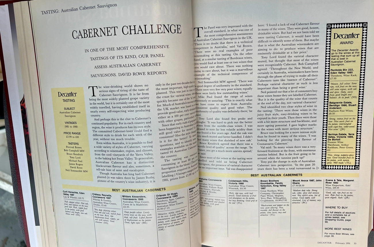 Our cover story for this issue was a panel tasting of 95 Australian Cabernets – ‘one of the most comprehensive tastings of its kind’. Wines ranged from £3.99 to £18, with the judges united in the ‘consistent quality and value’, though less so in the wines’ overt varietal character. South Australian wines dominated the top 13, including five from Coonawarra, but it was the £7.99 Penfolds' Bin 222 1985 from Eden Valley (now a rare collectable bottle) in top spot.