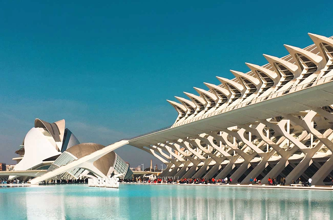 At the other end of the architectural spectrum are the iconic white-arched buildings that house the City of Arts and Science, designed by native son Santiago Calatrava and comprising five structures over 2km of the former bed of the river Turia.