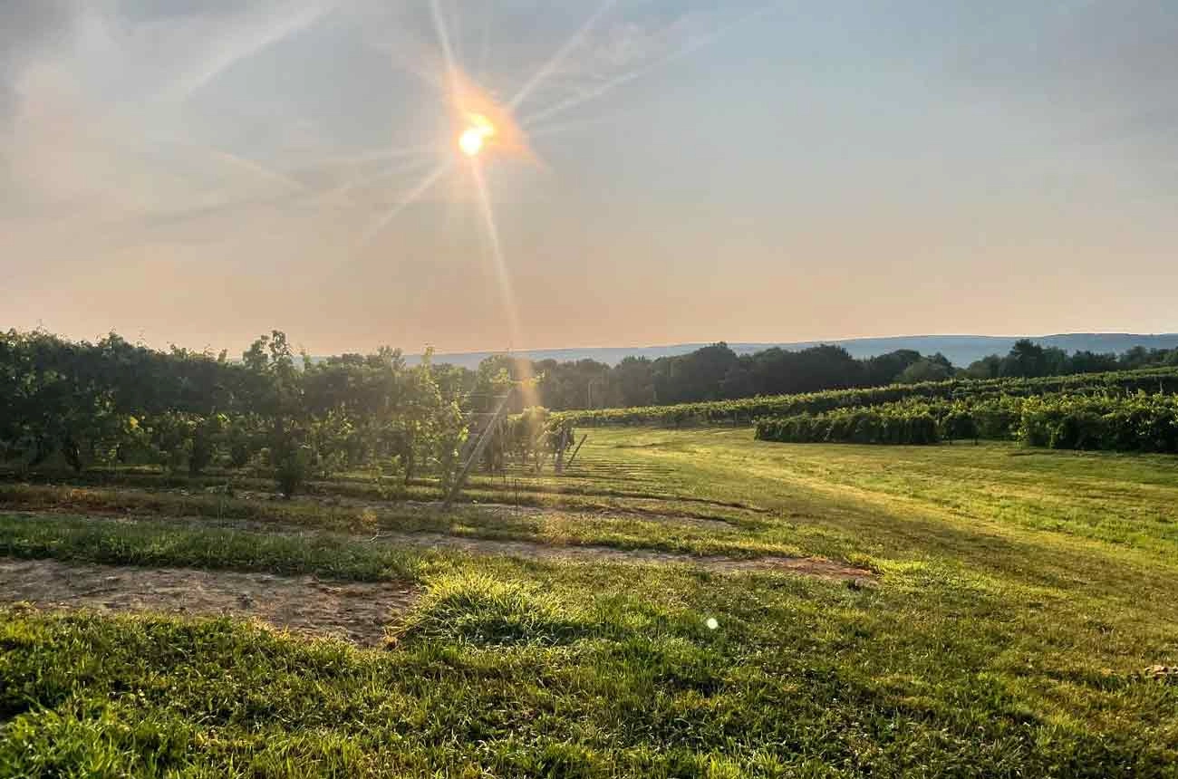 In response to the rain and smog, growers pulled leaves to increase circulation and sun exposure for the grapes. Seemingly overnight, sunburn caused by high UV rays emerged as a new concern, something rarely seen in New York.