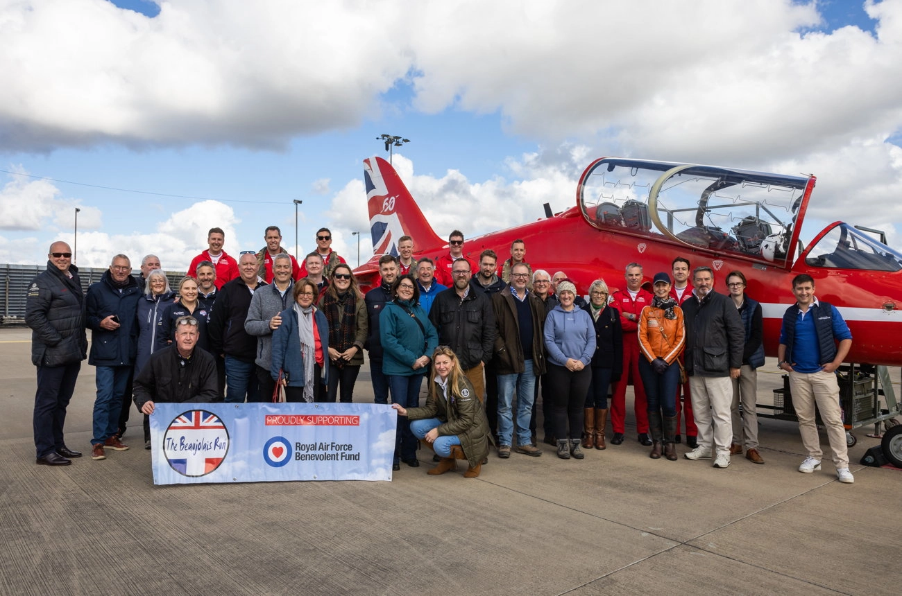 This year their efforts were unveiled to team Beaujolais Run over a practice demonstration from the Red Arrows at their Lincolnshire home of RAF Waddington.