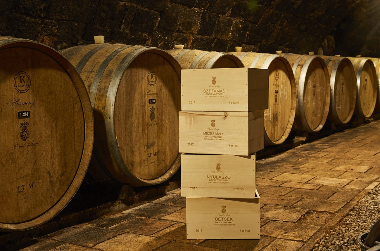 Royal Tokaji’s classic Blue Label and Gold label were fermented in stainless steel tanks before moving into 300L or 500L Hungarian oak barrels.