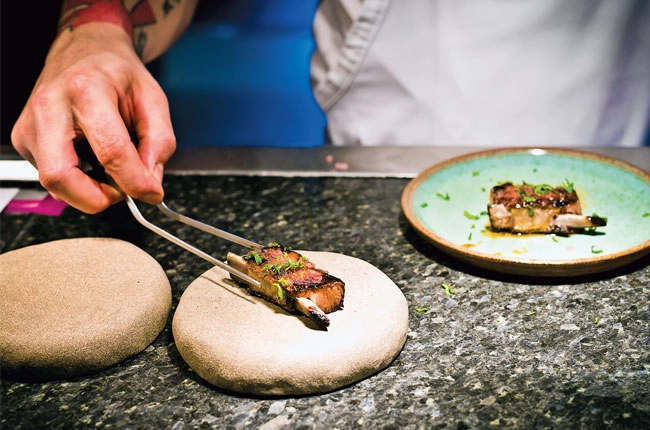 Emphatically yes, from the moment I spotted the open log fire outside the front door. Chef proprietor Gareth Ward, who’d already gained a Michelin star for Ynyshir (pronounced ‘Unna’s here’) has taken it to another level since he became a partner in January.