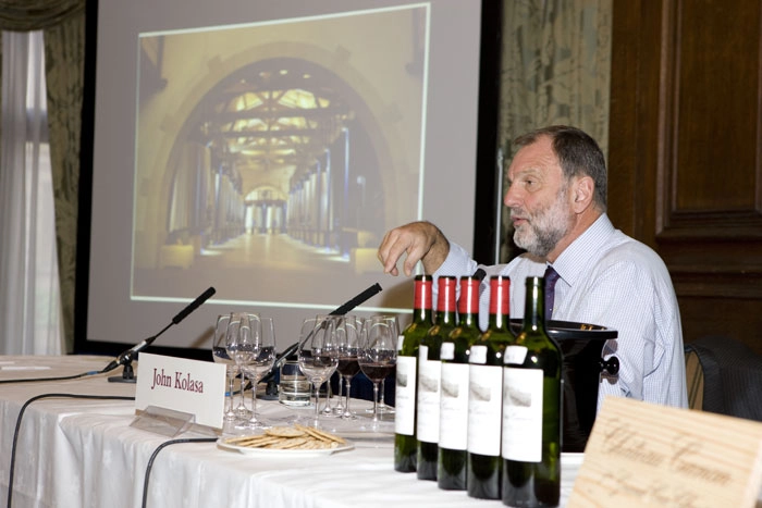 Kolasa told participants that global warming is a cause for concern in St Emilion, because Merlot, the dominant variety there, has been reaching very high degrees of alcohol in recent vintages. He said that he uses less new oak in such vintages, to avoid extracting too much oak tannin, and he tends to pick earlier than some neighbours, to retain greater freshness in the wines.