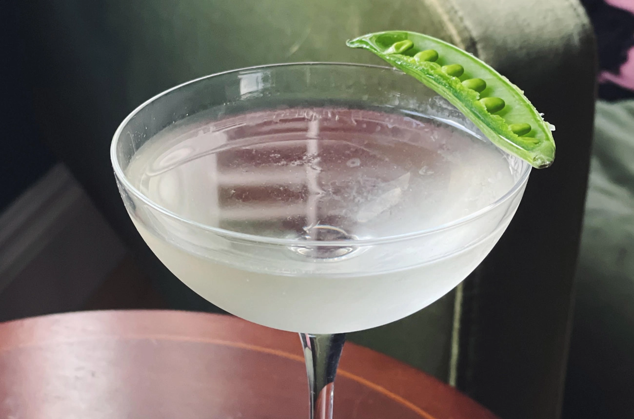 At NoMad’s subterranean bar Common Decency, the team craft new drinks each quarter highlighting different in-season produce. For spring, they’ve chosen rhubarb and peas – two ingredients that also shine in at-home serves.