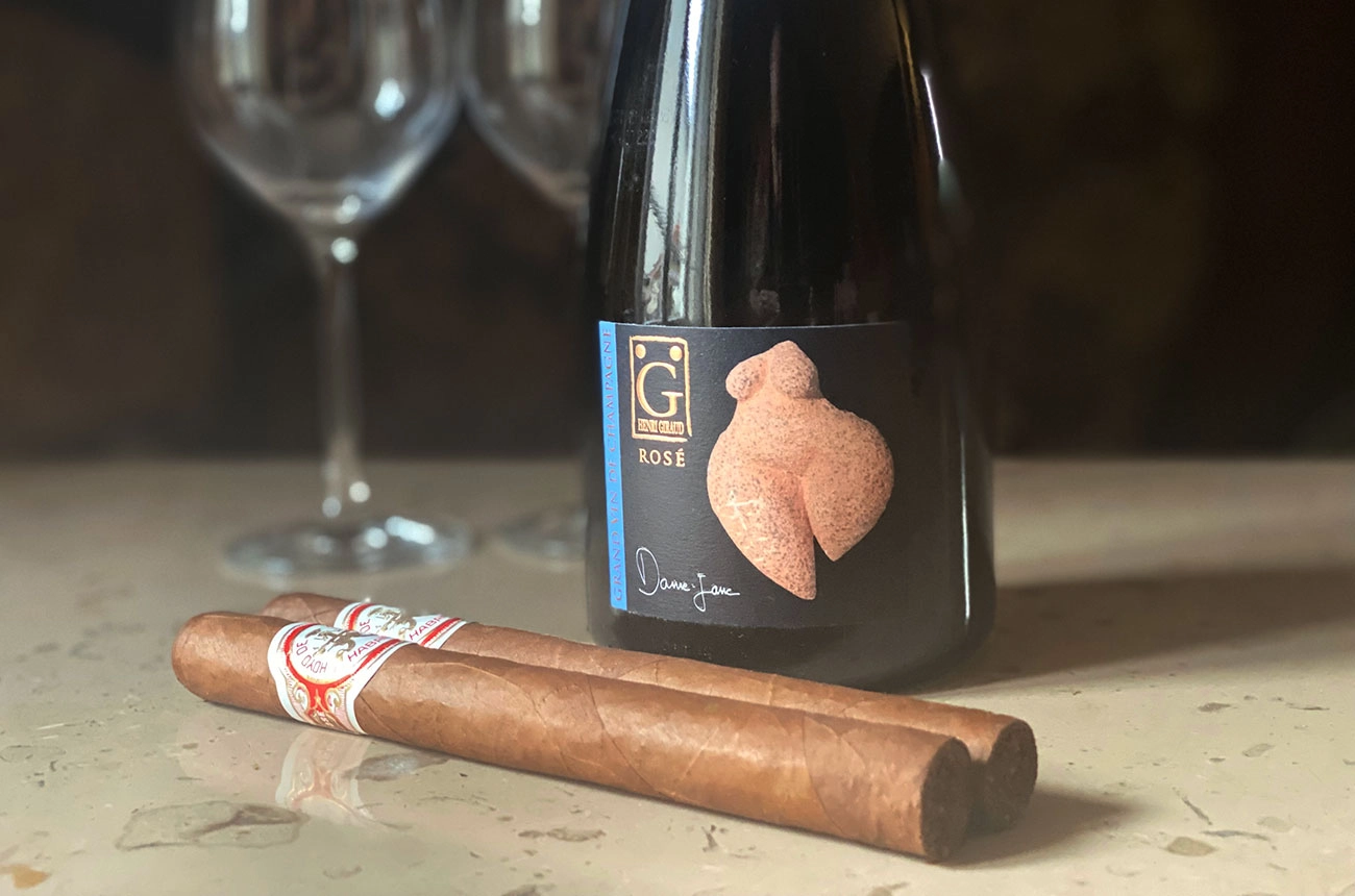 Henri Giraud evokes the many ways in which the worlds of champagne and cigars are connected. The aromatic complementarity, the comparable retro-olfactory sensations and the flavour complexity offer sophisticated pairing possibilities.