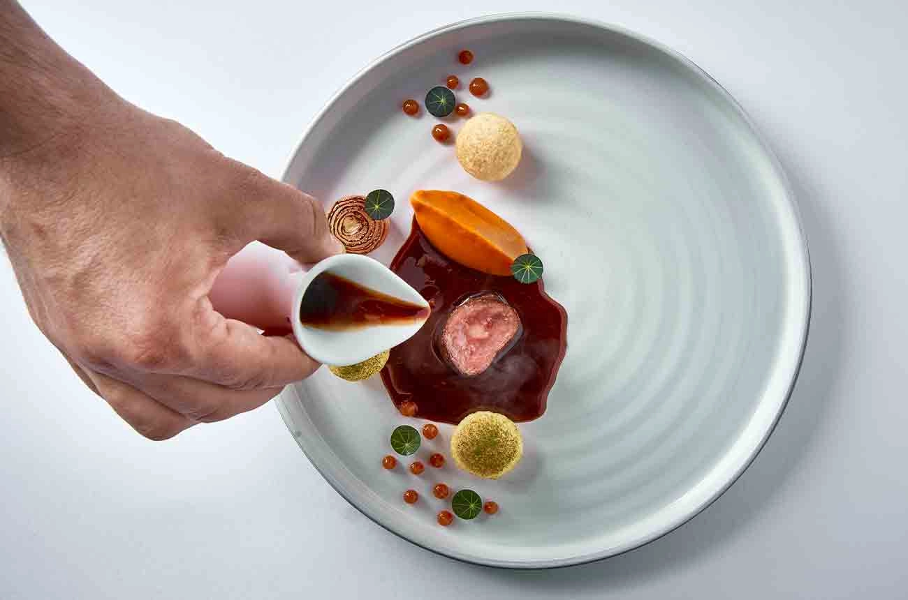 The culinary artistry of VIAJUR’s Franz Josef restaurant is where sustainability meets exquisite, vibrant flavours. Embrace zero waste, with catfish bones transformed into a rich, fennel-infused sauce. Cauliflower, raisins and sturgeon caviar add contrasting textures and pops of sweetness and salinity. Almost alingredients of this umami-rich dish are meticulously sourced locally.
