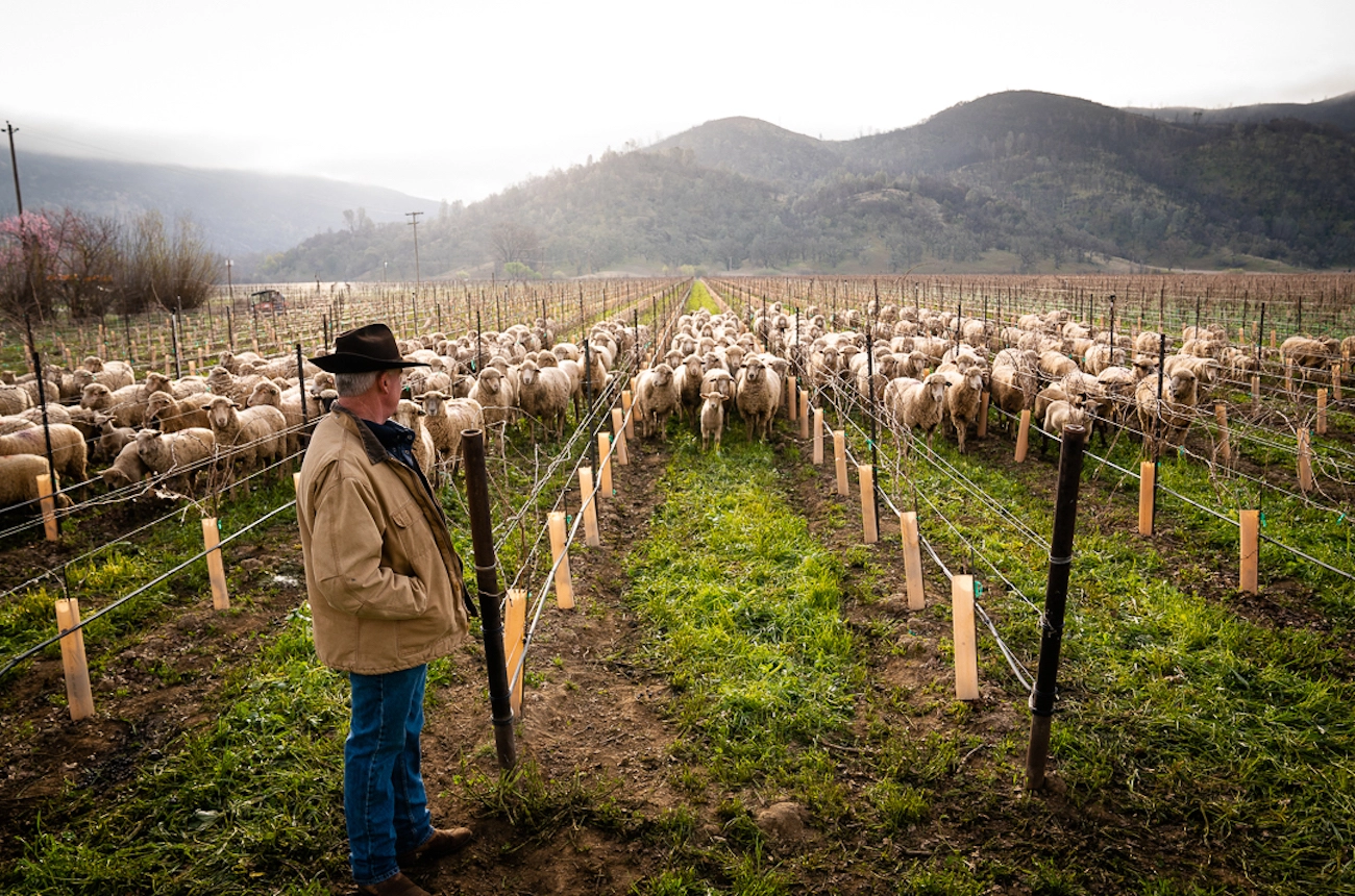 ‘These are smart animals; they are delicate on the land, and they do a good job keeping the grass down and the understory of the oak forest clean,’ said Shannon. His flock of 1,700 sheep graze the vineyard rows thrice yearly to control the weeds that fight for the vines’ water and nutrients. Employing sheep also promotes carbon sequestration in vineyards and provides natural regulation of disease and pests.