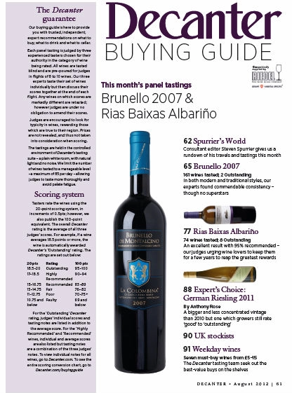 The panel members for the Brunello di Montalcino 2007 tasting in this month’s issue, for example, are Richard Baudains, Jane Hunt MW and Rosemary George MW, all of whom are Decanter World Wine Awards co-chairs for Italy, and who have an unrivalled knowledge of Italian wine.