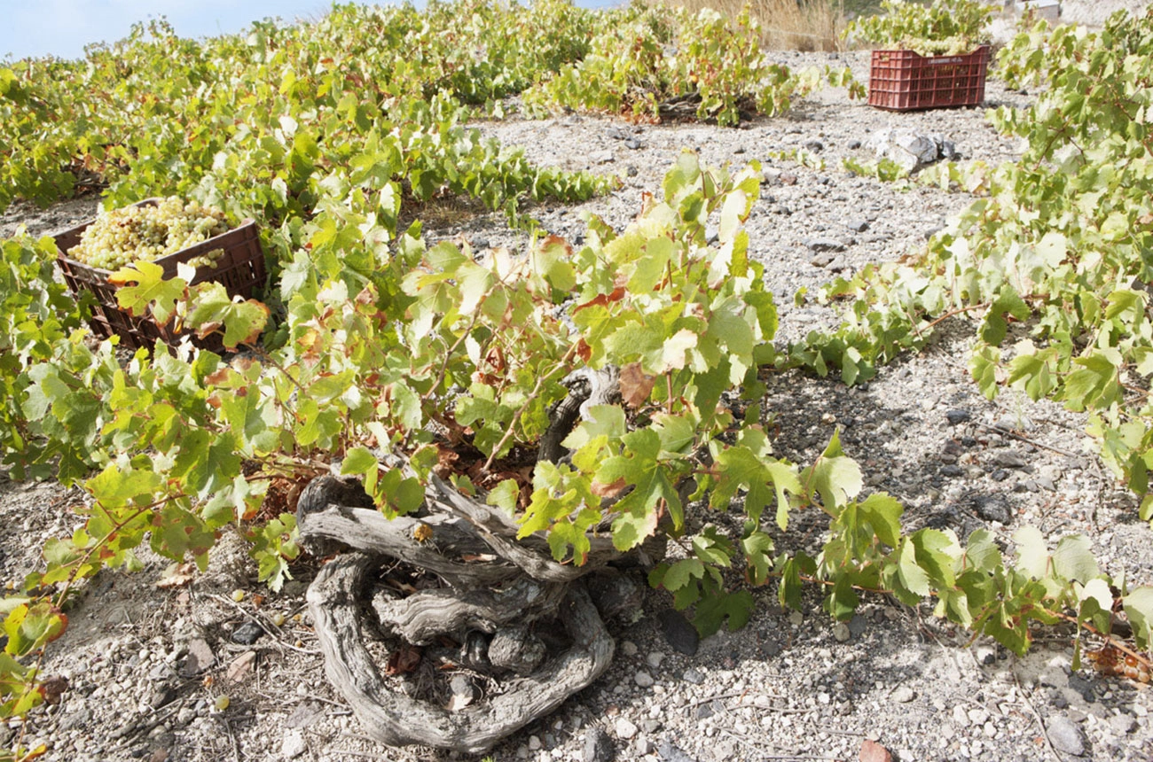 Careful grape sorting proved essential given irregular ripening. ‘The imbalance and unevenness of ripening was noticed, not only in the same vineyard, but also in single bunches,’ says oenologist Nikos Varvarigos of the island cooperative Santo Wines.