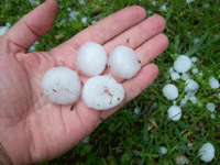 The hail, which in some cases measured 3cm to 5cm across, fell in separate storms on 11 and 13 May. In most cases, the storms lasted only 20 minutes.