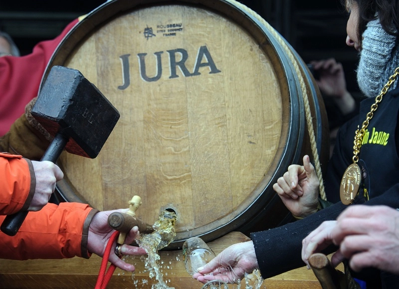 This year’s ‘percée du vin jaune’ festival in Jura. Image credit: Getty/AFPSebastien Bozon. Second image: Jacques Puffeney. Credit: Jacques Puffeney.