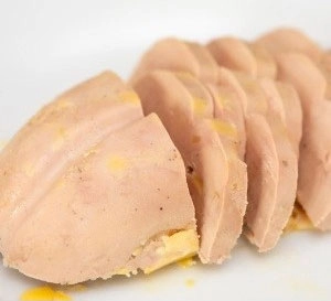 Foie gras is made from goose or duck livers massively expanded by force-feeding. Production methods are decried by animal rights groups.