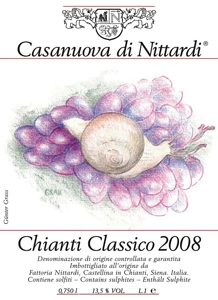 Grass, also a sculptor, painter and draughtsman, chose to depict a snail on a cluster of grapes for the label and wrapping paper of the 2008 vintage of Casanuova di Nittardi, which goes on sale in November.