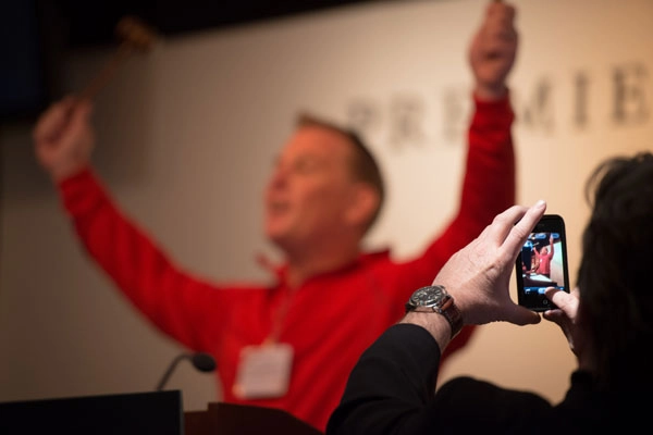 (Steve Reynolds of Reynolds Family Vineyards and Chair of Premiere Napa Valley 2013 kicks off the Live Auction. Photo by Bob McClenahan)
