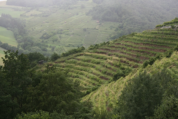 On the afternoon of June 25th, I stood with a Wachau winegrower called Peter Veyder-Malberg. We looked across to a terraced vineyard on a slope a couple of hillsides away called Brandstatt. It’s photographed above.