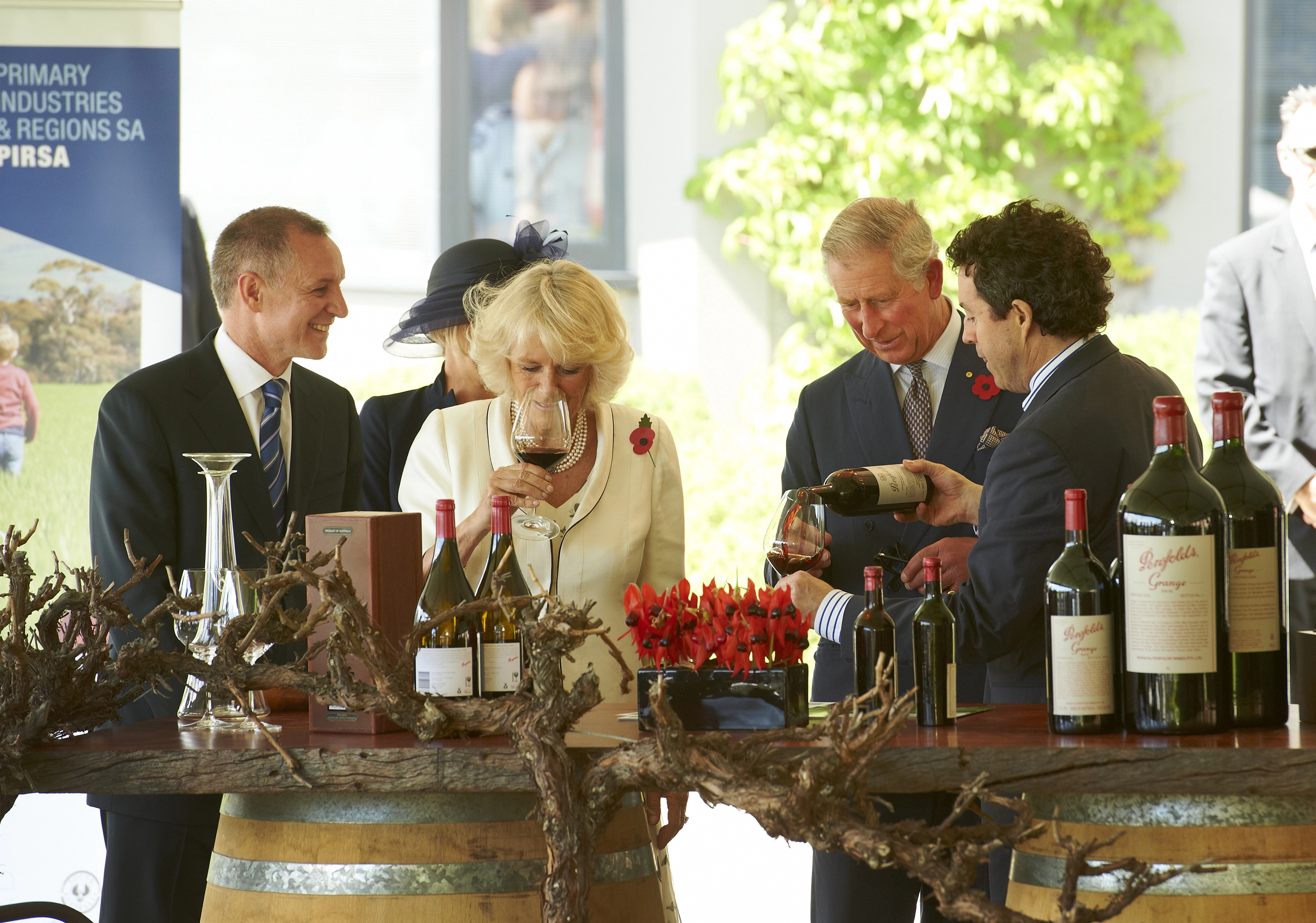 Prince Charles and the Duchess of Cornwall inspected the vineyards with Penfolds chief winemaker Peter Gago, who then poured them a glass of the ultra-rare 1962 Bin 60A.