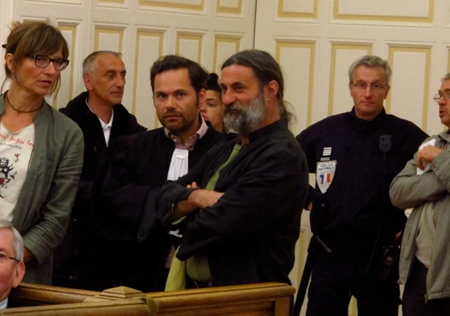 Olivier Cousin (centre) in court in Angers