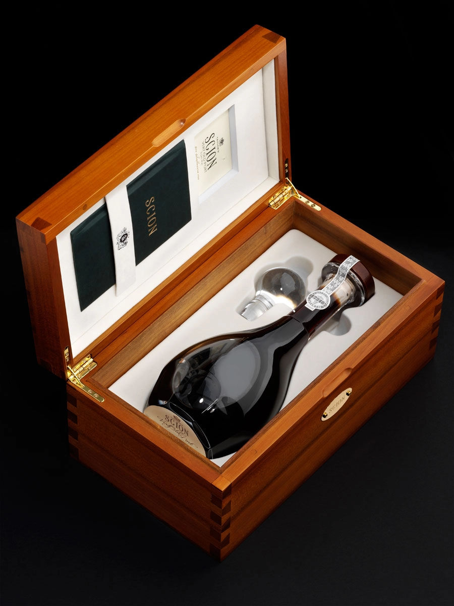 About 1,400 bottles of Scion will be released, packaged in a specially designed decanter and wooden box based on a 19th century instrument case.