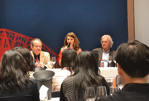 Stephanie and Hubert de Bouard (pictured, centre and right) chose the bi-annual Hong Kong trade fair to reveal the bottle design for the 2012 vintage, which is scheduled for a physical release on the market later this year.