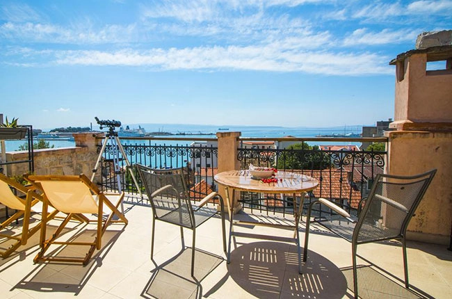 Immaculately decorated rooms in a central but peaceful location convenient for the palace and the port, and a super-friendly host. Excellent views from the balcony too. www.stlukeresidence.com