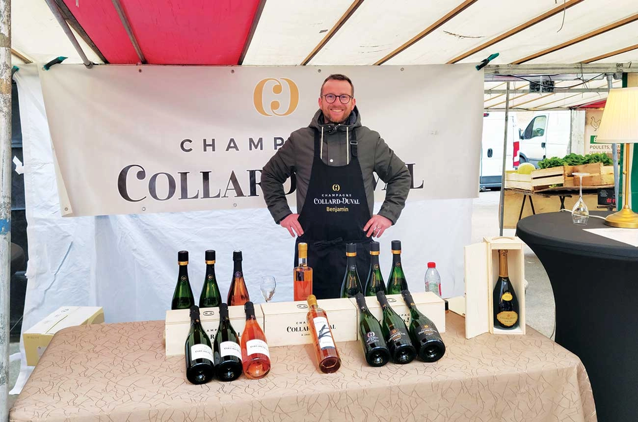 On a cool, misty Saturday, I found myself in Paris’ 7th Arrondissement and Marché Saxe-Breteuil. The city’s huge open-air food market offers fresh produce, Moroccan street food and, as it turns out, some fine grower Champagne. Strolling towards the Eiffel Tower, passing stalls of fresh vegetables and cured meats, I happened upon a tasting of Champagne Collard-Duval hosted by sales manager and winemaker Benjamin Adnet. This family-owned vineyard in Passy-sur-Marne dates back to 1794, but began producing wine under the Collard-Duval label with the 1991 vintage. Farming practices have been sustainable since 1992, receiving both HVE and VDC (sustainable and environmental) certifications in 2022.