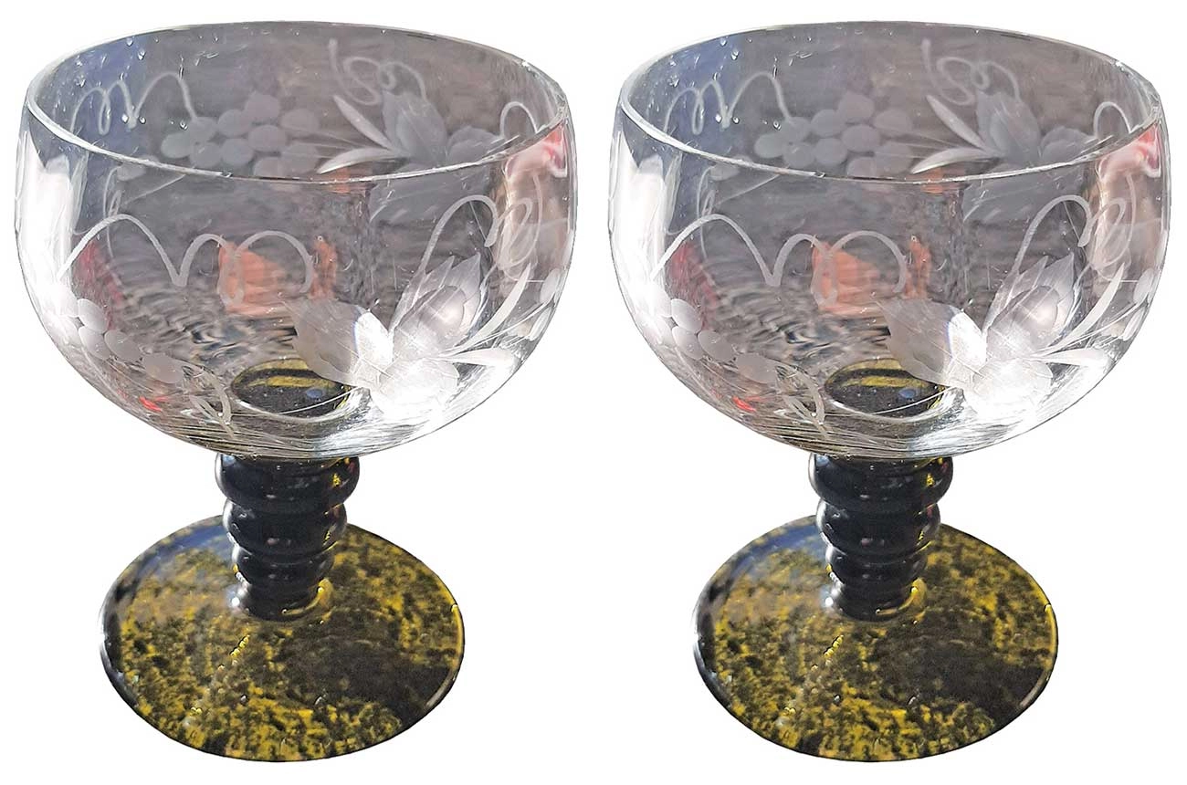 The wine glasses I wanted were hiding in a dusty, half-open cabinet in the basement, and had no price. The shop assistant superintending the ground-floor bazaar was foxed; he phoned the owner. Fifteen euros each, came the answer; I settled. Squat, with an olive-green beehive stem, and the small bowl elegantly engraved with bunches of grapes, vine leaves and curling tendrils. You fill them almost full, of course. Silly glasses. Gloriously silly.